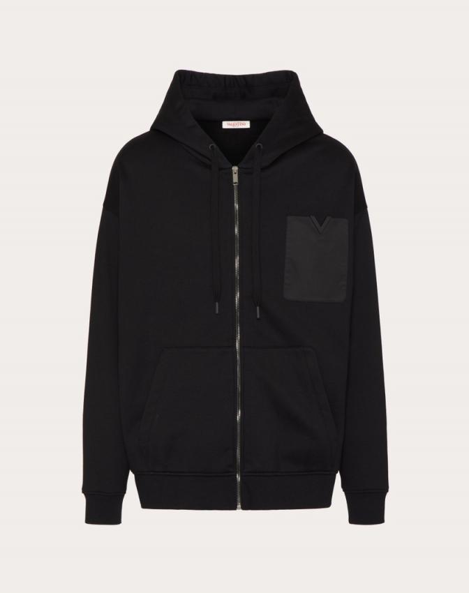 Valentino T-shirts and sweatshirts | Man TECHNICAL COTTON SWEATSHIRT WITH HOOD, ZIP AND RUBBERISED V DETAIL BLACK